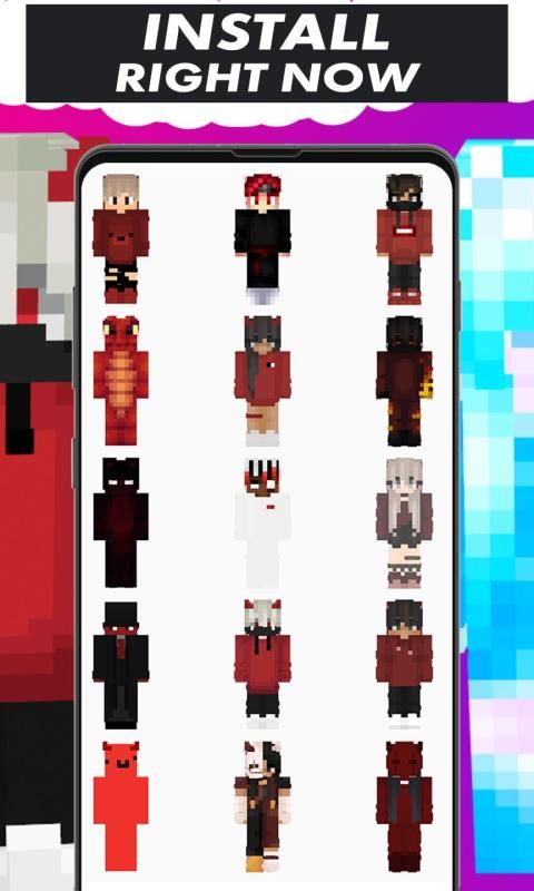 In the appendix you will find beautiful skins by nickname, hd skins, 4D skins, black skins, white skins, blue skins, red skins, yellow skins, green skins, purple skins, pink skins, golden skins, gray skins, orazhevye skins, as well as skins with glasses, in a mask, with a hood, in headphones, with tails, in a suit, with horns, with wings, with a raincoat, with a mustache, human skin, heroin skins, skins of top YouTube, skins of streamers, transparent skin, bare skins, Nuba skins, robot skins and other top skins for girls and boys.
