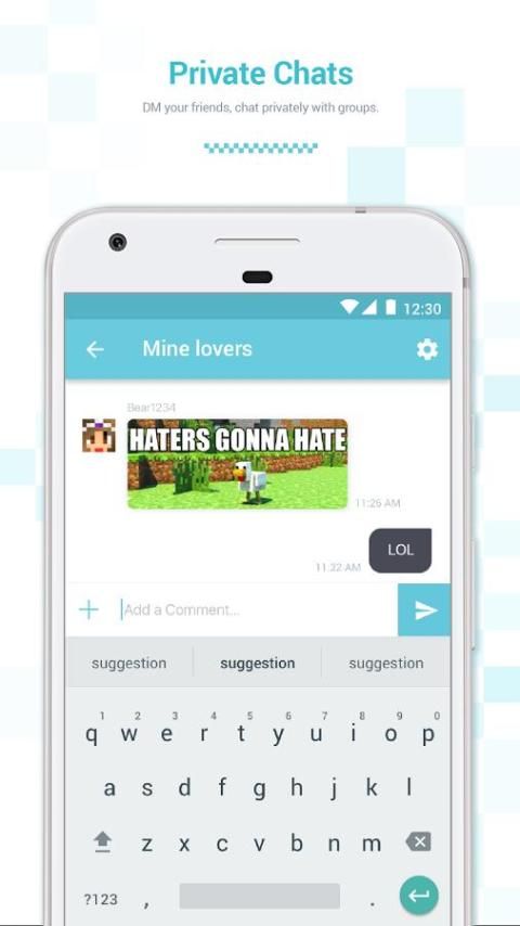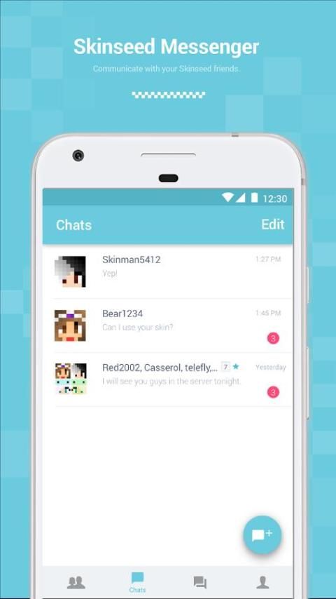 Skinseed मैसेंजर आप Skinseed पर अपने दोस्तों के साथ दोनों निजी और सार्वजनिक चैट करने की अनुमति देता। किसी भी विषय पर अपने दोस्तों से बात शुरू, यह Minecraft संबंधित है या नहीं हो।