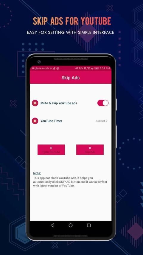 Skip Ad for Youtube is the best app to help you turn off the advertising sound on the youtube app and automatically skip the ad when it has ended. Skip the youtube ad when it has played 4 ~ 6s (It qualifies to ignore ads)