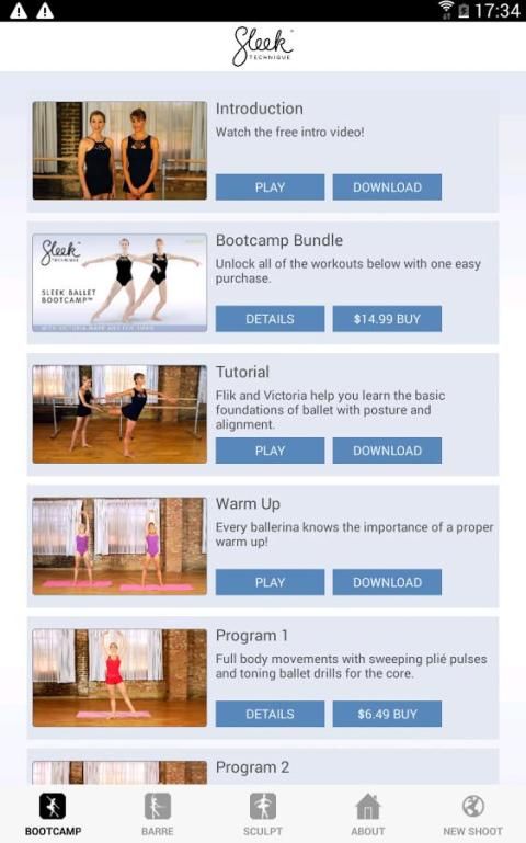 चिकना बैले Bootcamp ™ : तीव्रता में निर्माण और व्यक्तिगत रूप से या लगातार खेला जा सकता है कि 3 एक्स 20 मिनट कार्यक्रम। प्रत्येक बैले Bootcamp अनुक्रम अपने दिल की दर बढ़ाने के लिए और क्या आप कैलोरी जला तो, पसीना पाउंड से पिघल बनाने के लिए और दुबला मांसपेशियों को बनाने के लिए बनाया गया है।