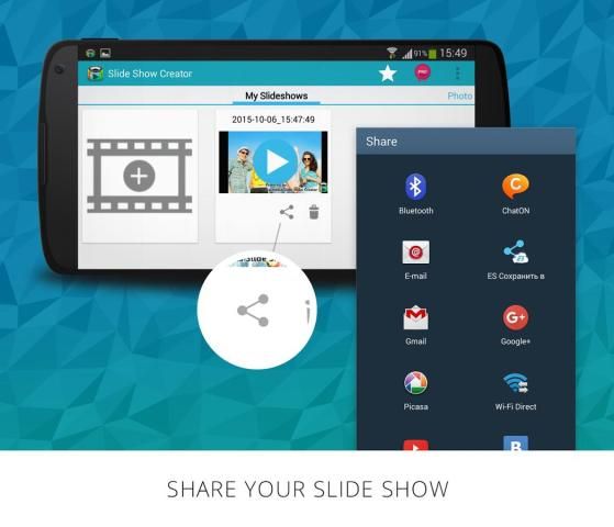 Make a slideshow as a gift to your beloved; create congratulations or presentations of your photos, pictures and music. If you have photos of your friends, children, pets, events or selfies then you NEED Slide Show Creator!
