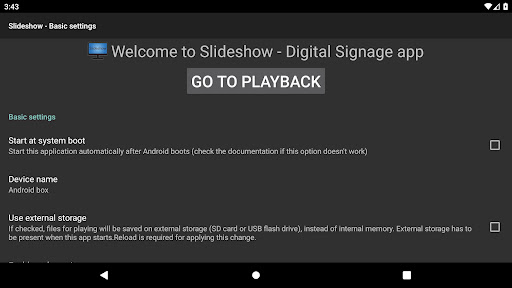 अपने एंड्रॉइड बॉक्स, स्टिक या टीवी को डिजिटल साइनेज डिवाइस में बदल दें और अपने ग्राहकों को बिक्री सामग्री प्रदर्शित करें।अपने एंड्रॉइड टैबलेट को एक फोटो फ्रेम या छोटे डिजिटल साइनबोर्ड में बदल दें।
