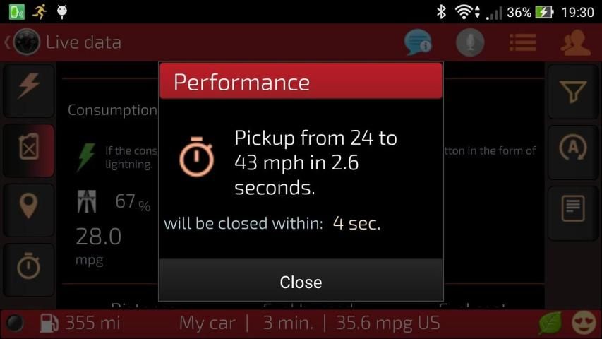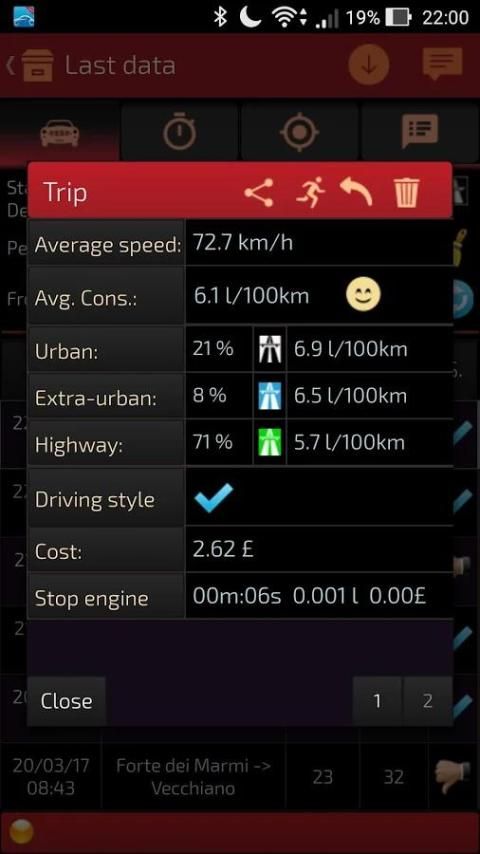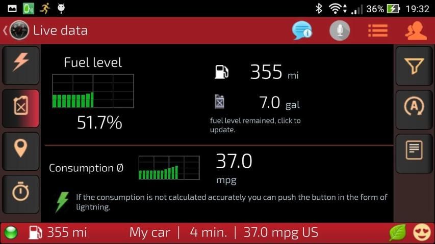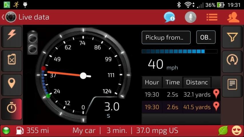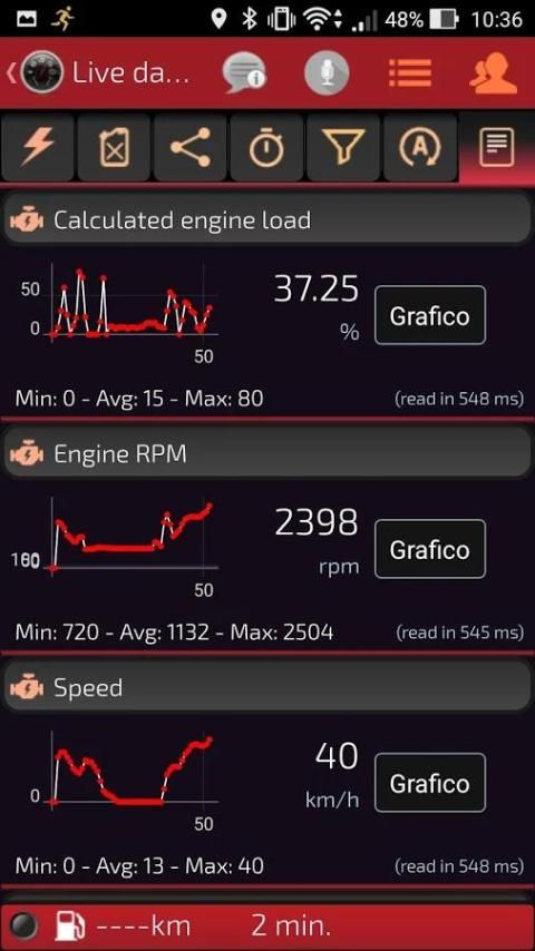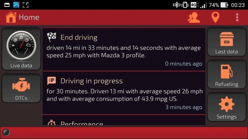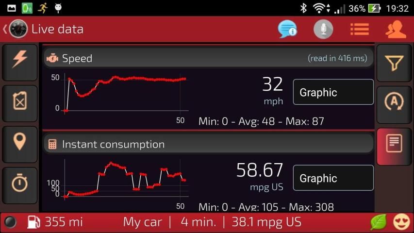 पहली स्मार्ट पर बोर्ड कंप्यूटर एक संगत OBD2 ELM327 ब्लूटूथ डिवाइस का उपयोग कर एंड्रॉयड प्लेटफॉर्म पर महसूस किया, नैदानिक प्रोटोकॉल के माध्यम से कनेक्ट करने में सक्षम। OBDII नैदानिक द्वारा दी गई जानकारी के लिए धन्यवाद, स्मार्ट नियंत्रण, खपत की गणना शुरुआत और हर कदम और दुकान के दौरे के अंत का पता लगाने में सक्षम है; इसके अलावा, यह गणना करने और ऐसी शक्ति, टोक़ के रूप में प्रदर्शन डेटा पर नज़र रखने और ऊपर या ब्रेक लगाना गति बढ़ा सकता है आदि