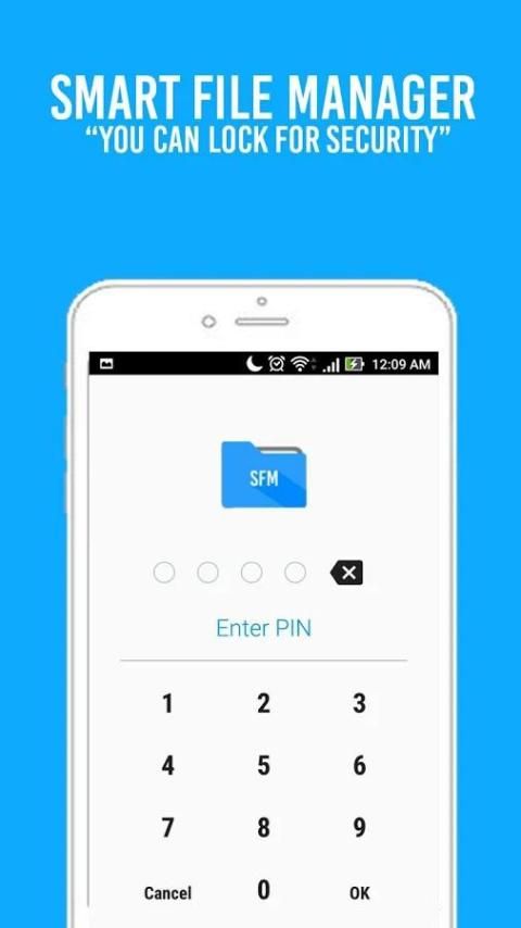 अन्य ताला लगा अनुप्रयोगों के बिना, स्मार्ट फ़ाइल प्रबंधक एक्सप्लोरर आवेदन आवेदन से सीधे डेटा सुरक्षा प्रदान करता है। आप सम्मिलित करें और सेटिंग> सुरक्षा में पिन सक्षम कर सकते हैं।