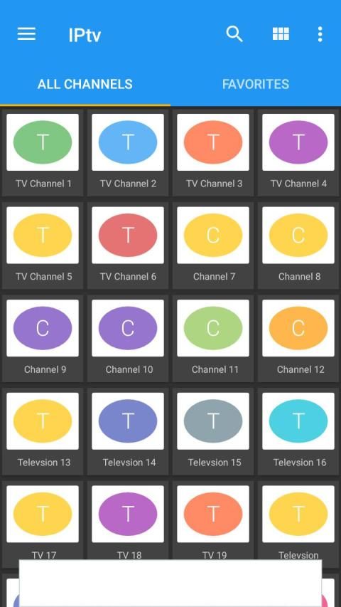 * टीवी चैनलों की ग्रिड, सूची या टाइल दृश्य