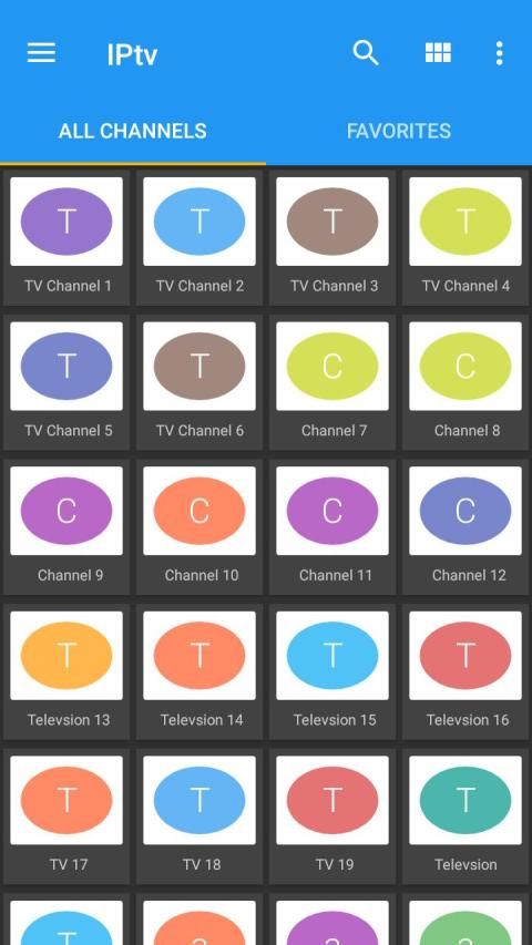 * Grid, list or tile view of TV channels