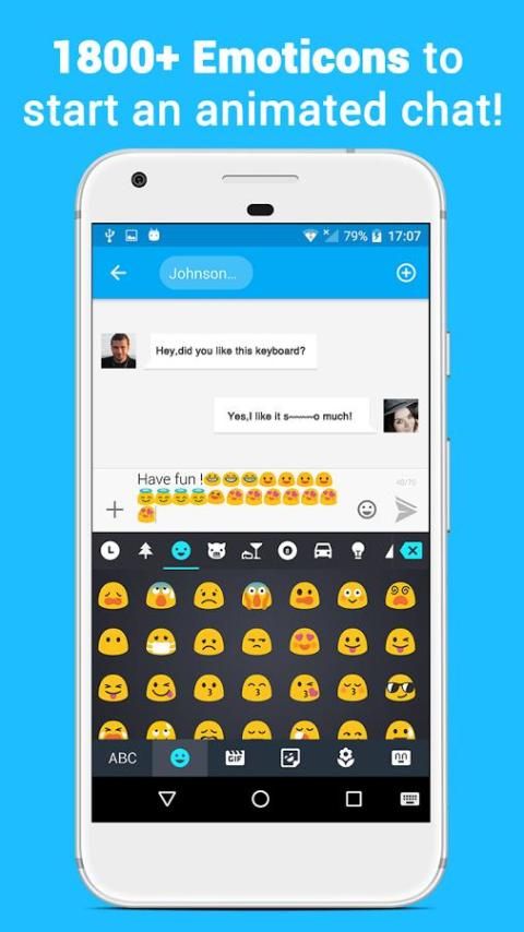 फ़ॉन्ट कीबोर्ड 1800 से अधिक एनिमेटेड इमोजी, एनिमेटेड इमोटिकॉन्स का समर्थन करता है, जैसे कि
