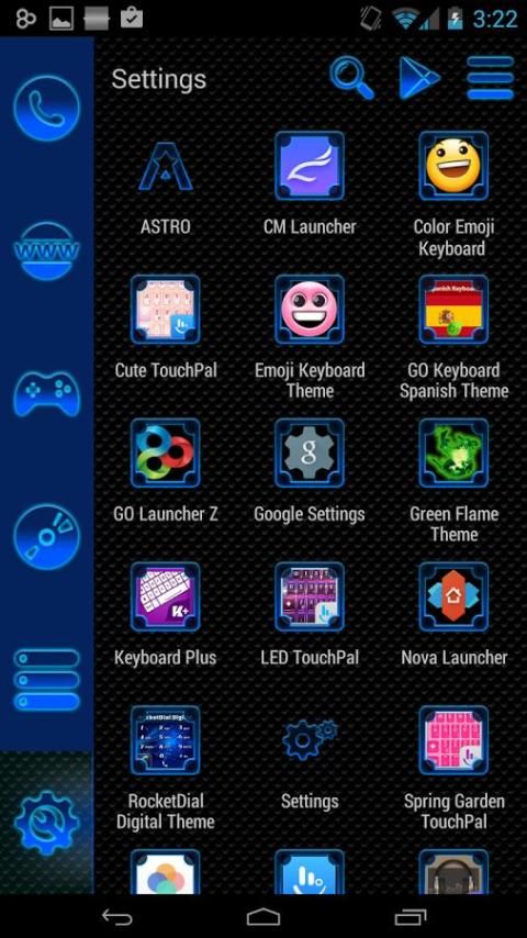 मेनू -> वरीयताएँ -> थीम -> स्थापित -> ब्लू नियॉन लांचर थीम