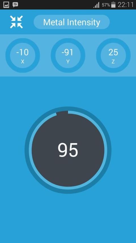 स्मार्ट मेटल डिटेक्टर एप्लिकेशन को अपने उपकरणों चुंबकीय संवेदक चुंबकीय क्षेत्र मूल्यों को मापने के लिए उपयोग करता है और एक वास्तविक मेटल डिटेक्टर में किसी भी एंड्रॉयड बदल जाता है