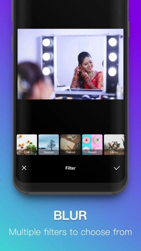 Over a dozen powerful Picture editor tools such as RGB curve filter snap resize and blur and etc. Use sticker text and background and stretch and body shaper mosaic adjust your photos and beauty your photo with leak effect and so on.