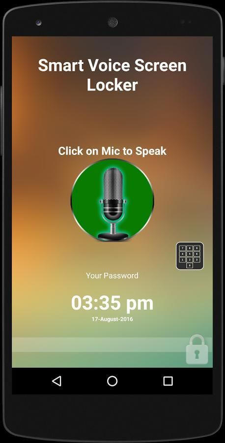>> आप यह बताने के लिए दूसरों या के बारे में अपने 'वॉयस पासवर्ड "पता है कि आप अपनी आवाज पासवर्ड तो कोई जरूरत नहीं है आप वैकल्पिक पिन कोड विकल्प का उपयोग कर सकते हैं परेशान करने के लिए उपयोग कर अपने फोन को अनलॉक करने के लिए अपने मोबाइल अनलॉक करने में असमर्थ हैं, तो एक कीपैड नहीं करना चाहते हैं लॉक स्क्रीन इस स्मार्ट आवाज स्क्रीन लॉकर के साथ प्रदान की जाती है।