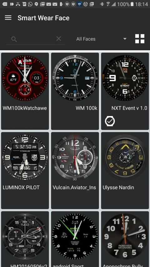 आवेदन आप सभी घड़ीसाज़ का एक ग्रिड दिखाएगा वर्तमान में आपके फोन पर स्थापित चेहरे।