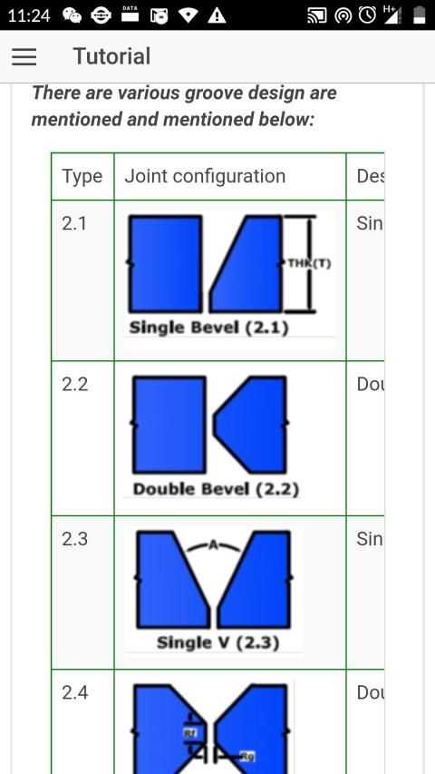 Further, Groove Joint configuration- single bevel, double bevel, straight face, single V, Double V, Single J, Double J, Single U , Double U, tube to tube sheet joint , (TTJ), square joints ( by change of grove angle 0 degree ) etc. these are covered almost all type of groove designs.