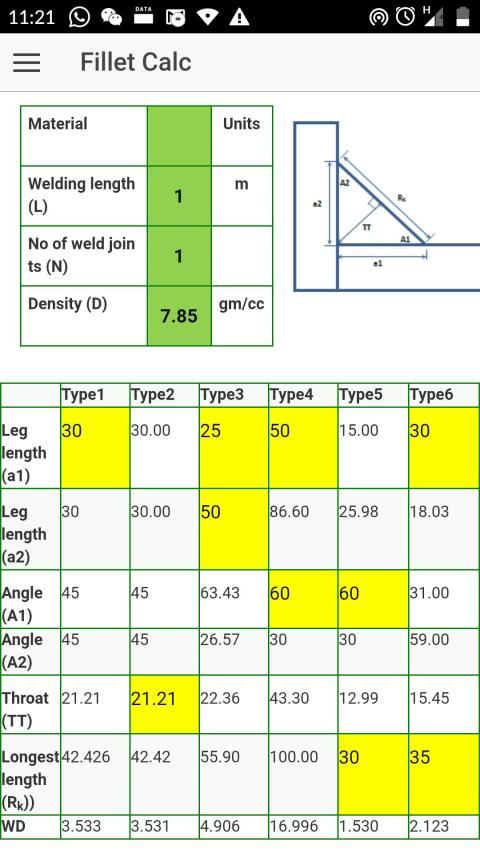Weld deposition weight calculation of other materials also feasible by change of respective material density.