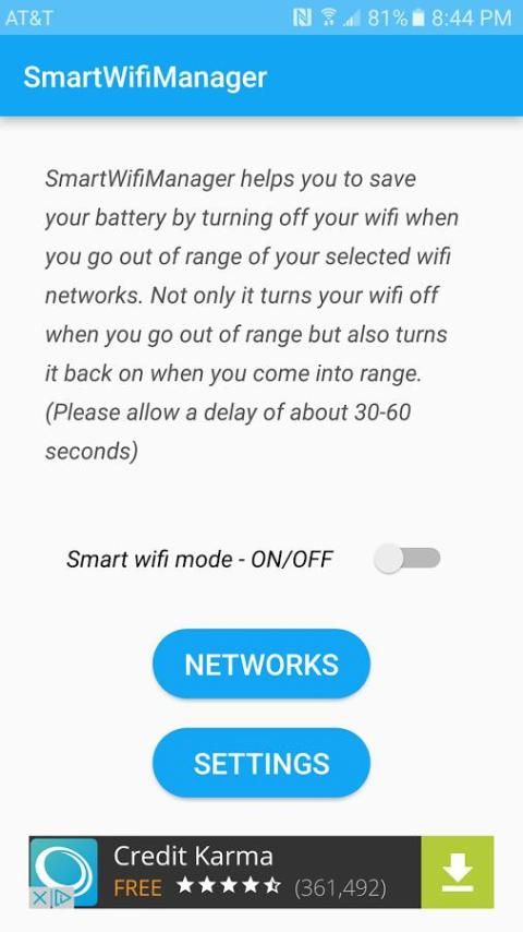 स्मार्ट वाईफ़ाई प्रबंधक बहुत प्रभावी ढंग से अपनी बैटरी बचाने के लिए अपने वाईफाई कनेक्शन लेते हैं। यह चालाकी अपना पसंदीदा वाईफाई नेटवर्क से जोड़ता है जब आप समय है जब आप उन निर्दिष्ट नेटवर्क की सीमा से बाहर जाने के आराम के लिए अपने वाईफाई से दूर रखने के लिए उन नेटवर्क की रेंज में आते हैं और जब आप की सीमा की बचत अधिकतम में आने पर इसे वापस मुड़ता है आपके वाईफाई की वजह से draining से बैटरी चार्ज पर दिया जा रहा है, भले ही आप किसी भी वाईफाई नेटवर्क से कनेक्ट नहीं कर रहे हैं।