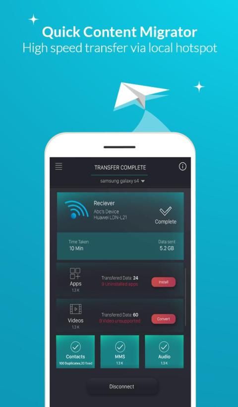 अपने सभी निजी डेटा को नए फोन में सहजता से साझा करें, बड़ी फ़ाइलों को भेजें मोबाइल ट्रांसफर ऐप में एंड्रॉइड ट्रांसफर और आईओएस ट्रांसफर के लिए असाधारण समर्थन है। यह जल्दी से सभी डेटा को कॉपी करता है और सबसे अच्छा फाइल ट्रांसफर ऐप, कॉन्टैक्ट ट्रांसफर ऐप, फोटो शेयरिंग ऐप, मैसेंजर माइग्रेटर और वीडियो शेयरिंग ऐप के रूप में कार्य करता है। यह कुशल डेटा प्रबंधन उपकरण है जो बड़ी फ़ाइलों को भेजने और एंड्रॉइड से आईफ़ोन और आपके सभी पुराने मोबाइल डेटा को गोपनीयता की हानि के बिना नए मोबाइल में ट्रांसफर करने की अनुमति देता है।