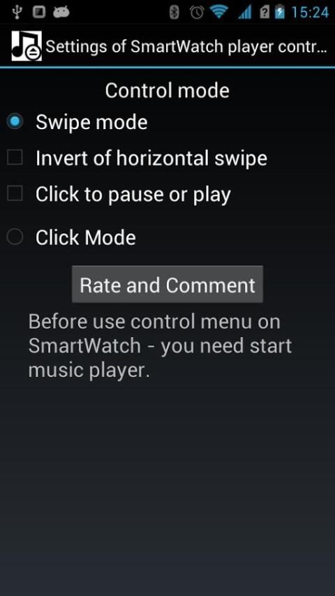 SmartWatch पर उपयोग नियंत्रण मेनू से पहले - आप संगीत खिलाड़ी शुरू की जरूरत है.
