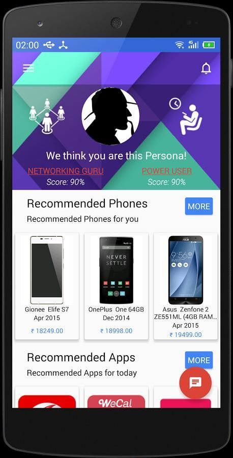 2) Personalized smartphone recommendations based on your persona, derived from your device usage and your social profile