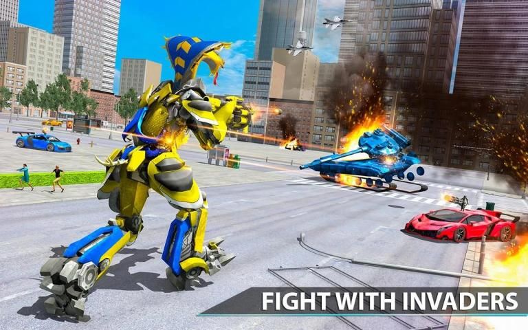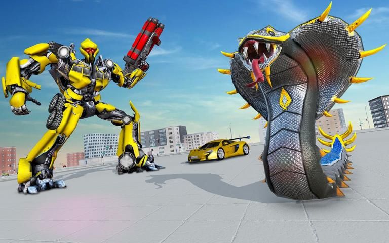 In the snake robot car transforming robot snake game you as an eminent car, human or snake transforming robot has to crush the destructive monster cars by shooting with variety of weapons. Eradicating all evils in multi robot war Future snake robot fighter and Robot commando shooting game will require extraordinary robot transform skills and kill cars with ultimate car fire shots.
