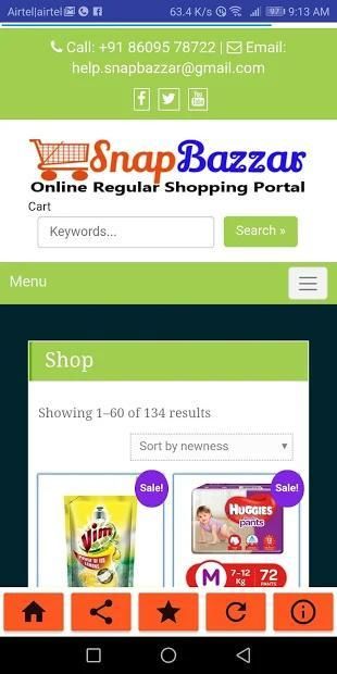 Snap Bazzar India is an online shopping portal, where you can purchase the essential items of the right quality at the right price. Within 24 hours of your order, we will be able to provide you services on your door.