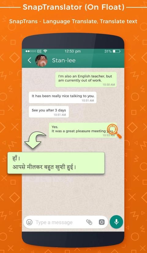 स्नैप अनुवादक एकाधिक भाषा अनुवादक एप्लिकेशन के साथ चैटिंग।