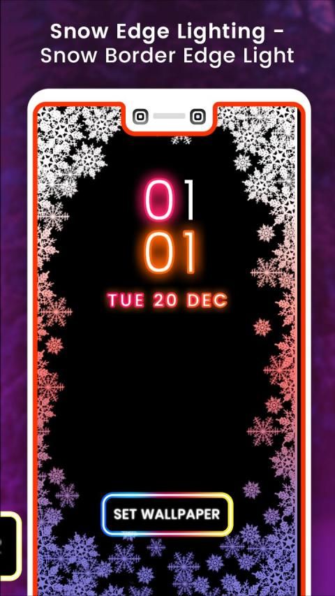 स्नो एज लाइटिंग - स्नो बॉर्डर एज लाइट भी उपयोगकर्ताओं को सर्वश्रेष्ठ-एनिमेटेड प्रभाव के साथ थोड़ा वीडियो स्नो एज लाइव वॉलपेपर सेट करने की अनुमति देता है। आवेदन भी