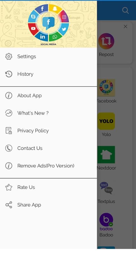 ✔ आप इस एप्लिकेशन के भीतर सभी नीचे सूचीबद्ध सामाजिक नेटवर्क तक आसानी से पहुंच सकते हैं: access