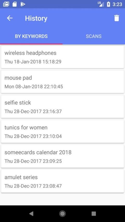 SoftShopper बाद में समीक्षा के लिए अपनी खोजों या स्कैन बारकोड बचत होगी। आप उस समय तय नहीं कर सकता, तो बस वापस इतिहास में जाएं और जहां आपने छोड़ा था से उठा।