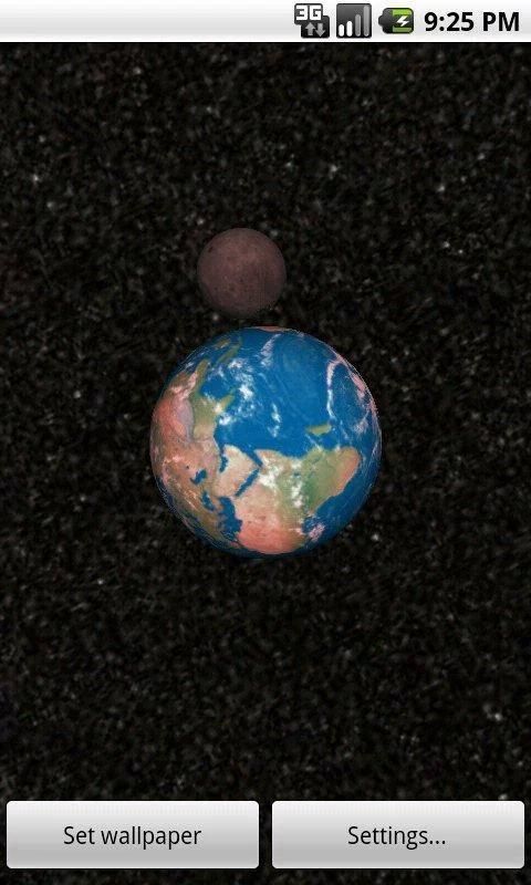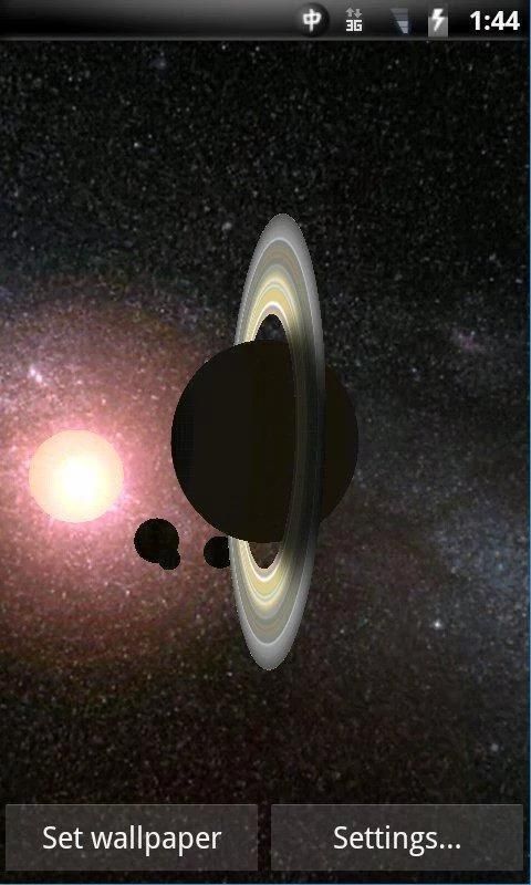 Animated Live 3D Wallpaper of the solar system. This Lite version includes Saturn circled by four of its moons and Earth + Moon with the Sun as Red Giant star with starry background. Slide over the display to move around and double-tap on the screen to switch between the planets.