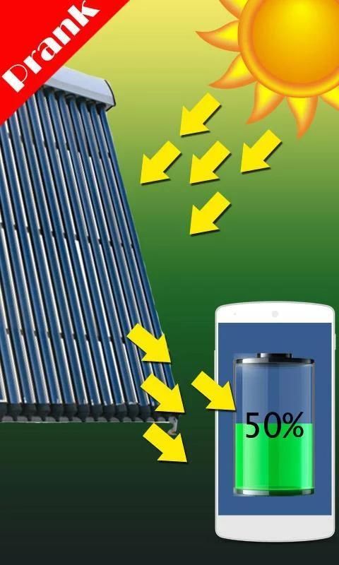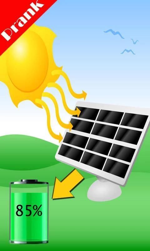 The "Solar Battery Charger Prank" is a fake app build to prank your friends and family. The app simulates battery being charged by solar power that the sun light.