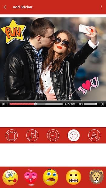 Many pre built videos themes like love and valentine, New Year and birthday, Diwali and Christmas video themes are provided. You can also add frames, background, emoji and text and stickers to your videos.