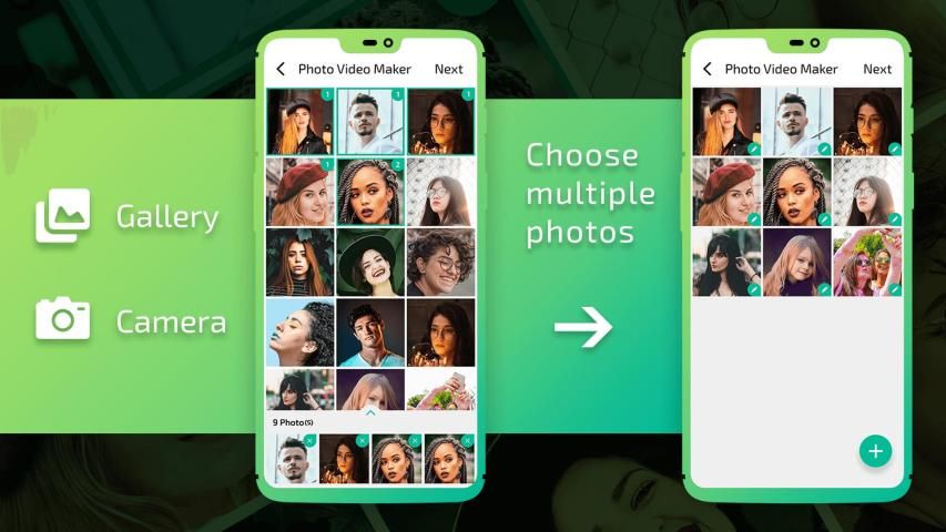 - फोटो से वीडियो बनाने के लिए गैलरी से कई छवियों पर कब्जा या चयन करें।