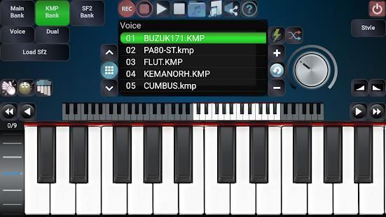 Soundfont KMP Piano allows you to play piano, Soundfont (Sf2) instruments and KMP (Korg) instruments. Enjoy realistic high-quality instruments on your tablet and phone with Soundfont KMP Piano. You can play styles (rhythms) while playing instruments. Keys are touch sensitive so if you press softer, you get a lower voice. You can record your own music with Soundfont KMP Piano allows you accompany a song in your device library. You can record and mix instruments, rhythms, playback music and microphone sound.