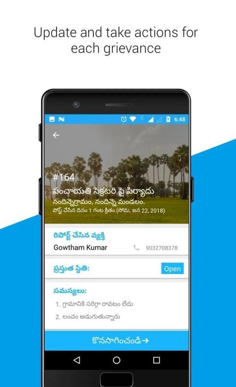 Officer's app for Grievance reporting and re-addressal application Nivedhana. With this app an officer can: