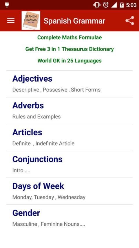स्पेनिश व्याकरण मास्टर जानने के लिए पूरी तरह से ऑफ़लाइन स्पेनिश व्याकरण संदर्भ पुस्तक और मास्टर स्पेनिश व्याकरण, विस्तार में व्याकरण विषयों की एक विस्तृत रेंज को कवर है