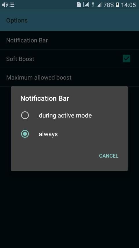 यदि आप शून्य को बढ़ावा देते हैं, तो स्पीकर बूस्टर फुल प्रो बंद हो जाएगा। अधिसूचना आइकन केवल लॉन्चिंग में आसानी के लिए है।