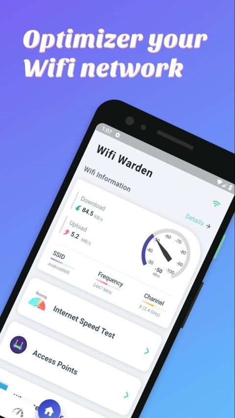 Just take 3s to test Internet connection speed, we will show accurate speed of upload, download. Don’t waste memory, slow phone down, our compact Internet booster and optimizer application will help you test WiFi signal quickly and easily.