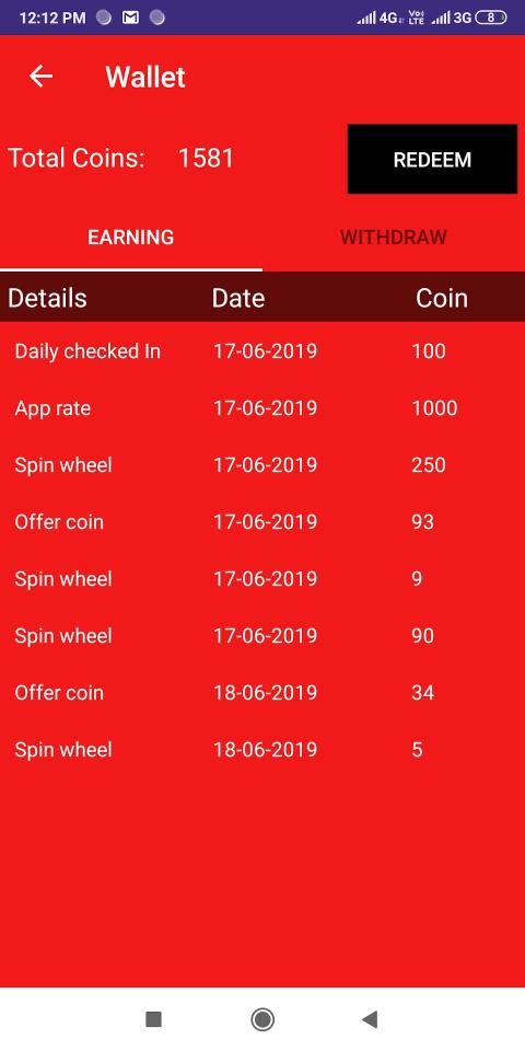 This app has also luck by spin feature, in that you need to just select one number and spin the wheel. You will get huge amount of coins if that worked for you.