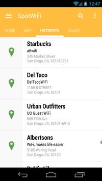 Automatic WiFi: SpotWiFi manages many trusted hotspots like Starbucks and McDonald's and connects automatically when in range. Hotspots for your area are updated daily keeping you current even when traveling.