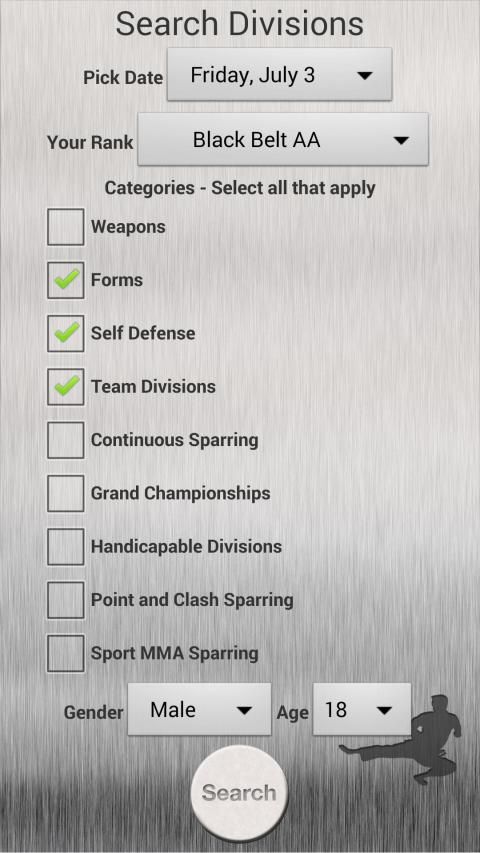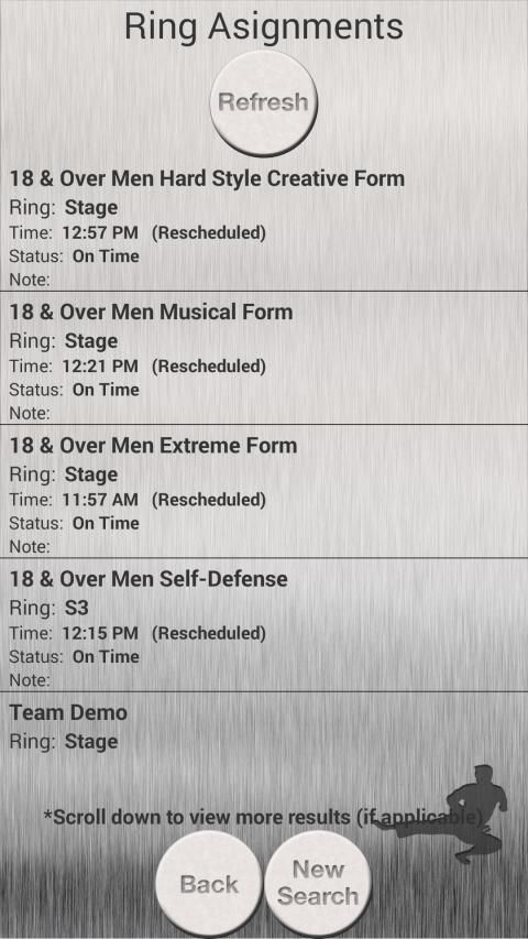 Start Times App displays current starting times of all Divisions and their corresponding Rings at participant Martial Arts Tournaments.