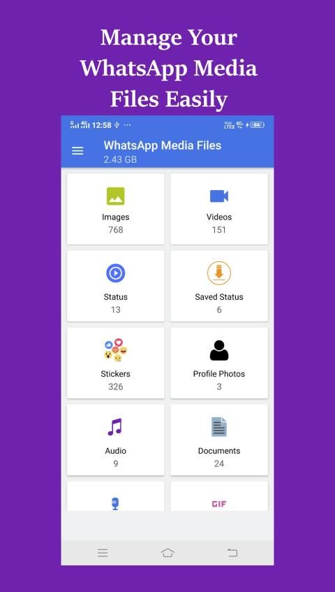 यह कई सेव, डिलीट, शेयर और सॉर्ट जैसी शक्तिशाली सुविधाओं के साथ व्हाट्सएप मीडिया फ़ाइलों को प्रबंधित करने का एक उपकरण है।