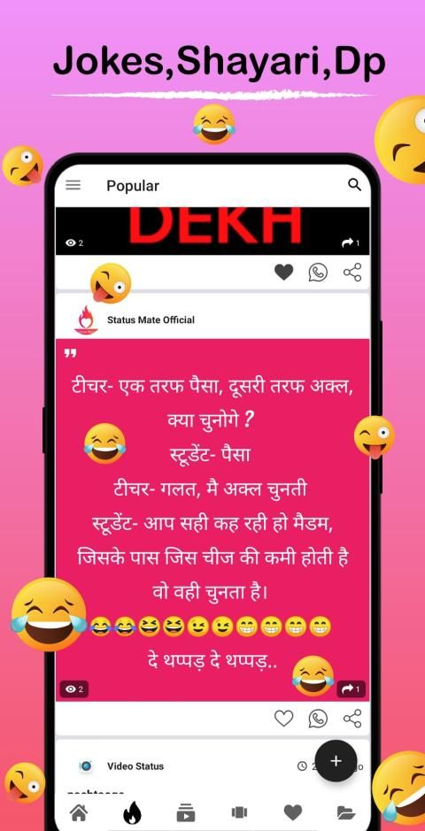 is the Best Status App in India, Best Collection of Video Status, WhatsApp Status, WhatsApp DP, Funny Video, Funny Image, Jokes, Shayari And Much More Fun.