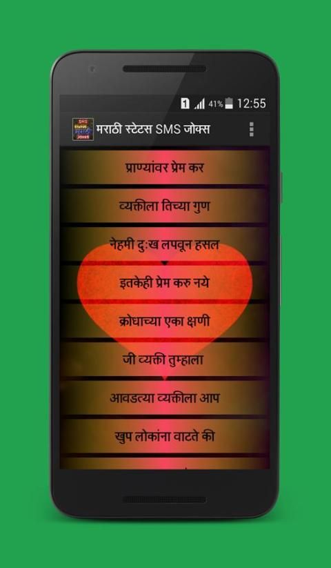 यह आवेदन नई नवीनतम मराठी एसएमएस, मराठी विनोद और मराठी स्थिति का संग्रह होता है।