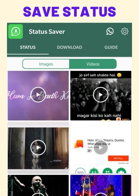 व्हाट्सएप के लिए स्टेटस सेवर, छवियों और वीडियो को तेजी से डाउनलोड करें और स्टेटस से मुक्त करें