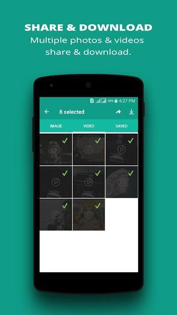 व्हाट्स ऐप के लिए स्टेटस सेवर आपको व्हाट्सएज़ नया ऐप 2018 खाता की नई स्टेटस फीचर के फोटो फोटो, जीआईएफ, वीडियो डाउनलोड करने देता है, यह ऐप से सीधे अपने दोस्तों और संपादकों को साझा करने की अनुमति देता है।
