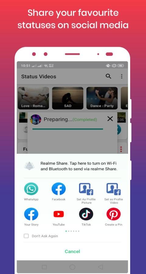 Something New Everyday : We're uploading new video status everyday, you will get a perfect dose of latest videos to share with your friends and family.