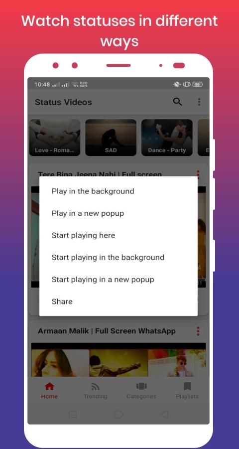 Search: Within our app you can search millions of videos status and share them with your friends.