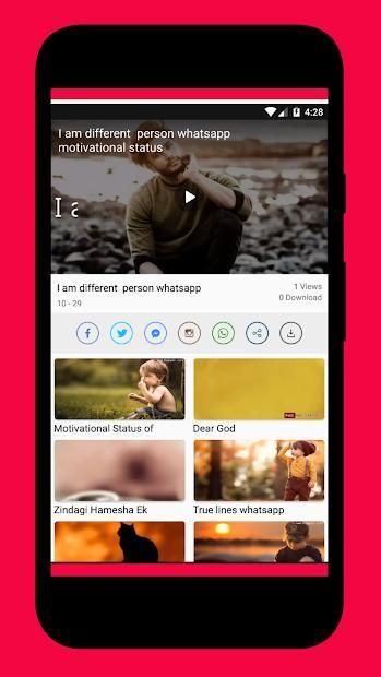 Status Videos app has the large collection of best whatsapp status videos ever categories like Love Status, Miss you Status, Funny Status, Punjabi Video Song Status, Cute Status, Sad Video Status, Motivational video status, Marathi video status and 30 Seconds Lyrical Video for your WhatsApp video status.