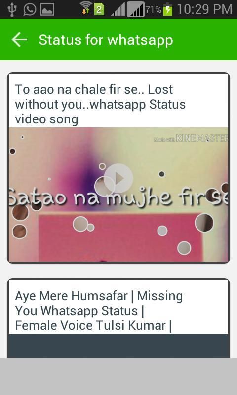 Whatsapp वीडियो सांग स्थिति: सबसे अच्छा वीडियो गाने का एक बड़ा संग्रह अपने WhatsApp स्थिति के बारे में साझा करने के लिए।