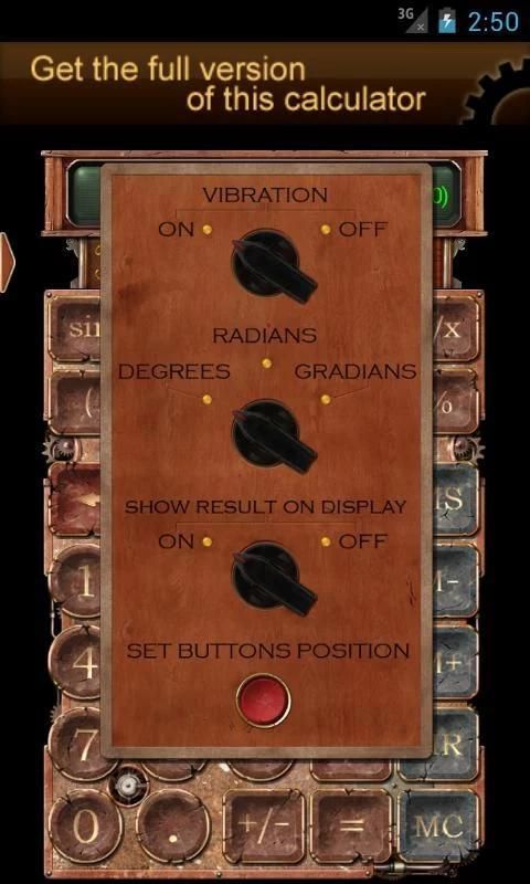 वैज्ञानिक कैलकुलेटर बटन स्थिति को बदलने की क्षमता के साथ steampunk शैली में प्रदर्शन किया।
